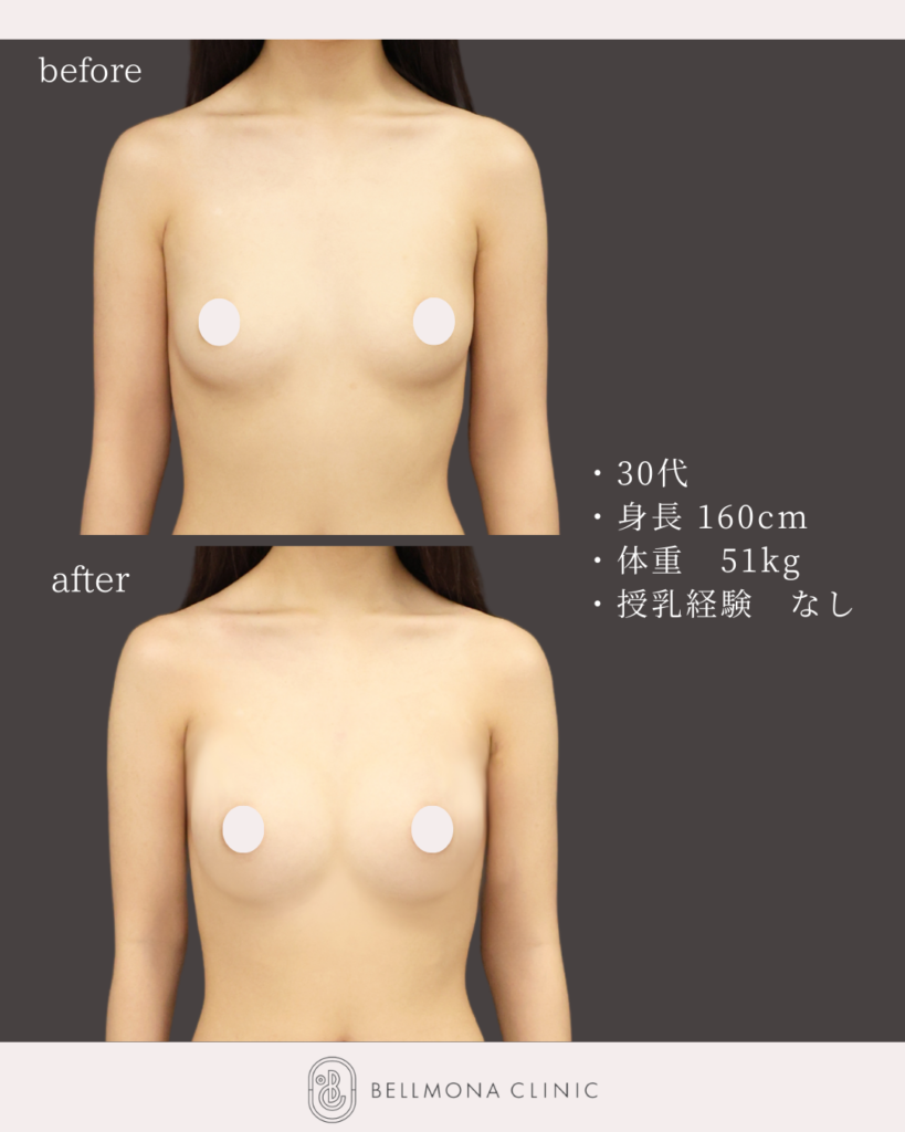 脂肪注入により、シリコンバッグインプラントの輪郭を極力目立ちにくくさせるための豊胸手術です。