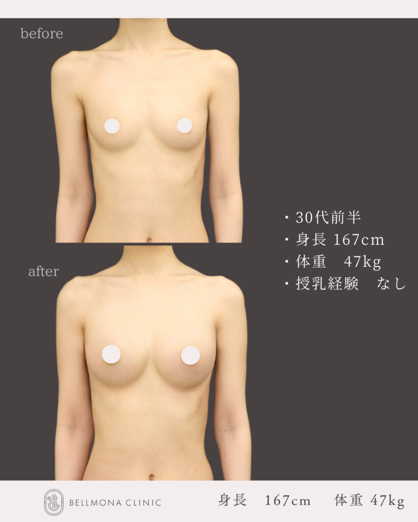 脂肪注入により、シリコンバッグインプラントの輪郭を極力目立ちにくくさせるための豊胸手術です。