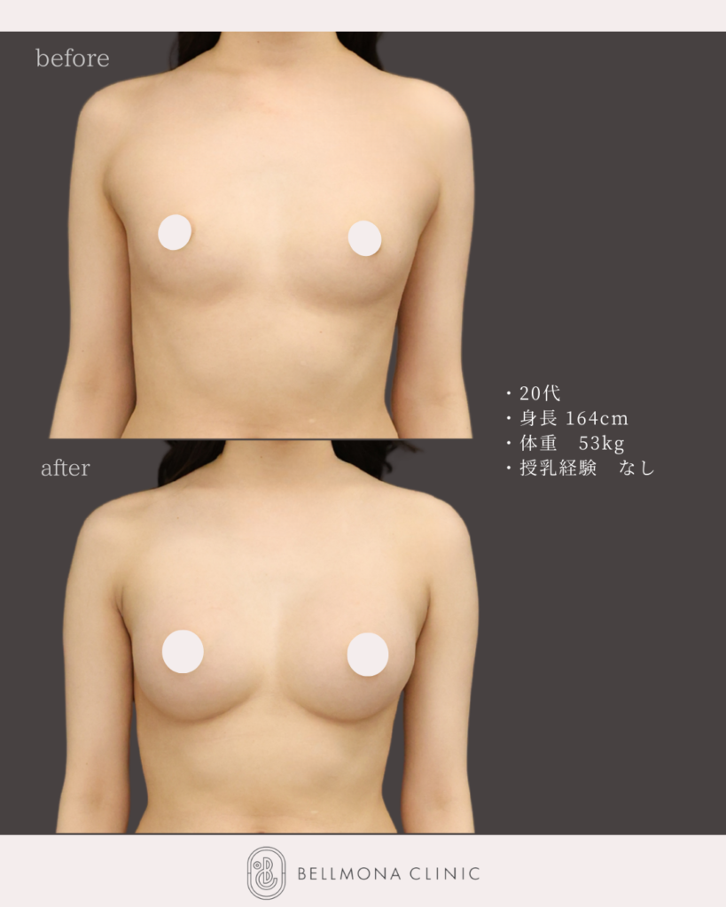 脂肪注入により、シリコンバッグインプラントの輪郭を極力目立ちにくくさせるための豊胸手術です。